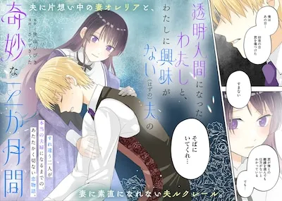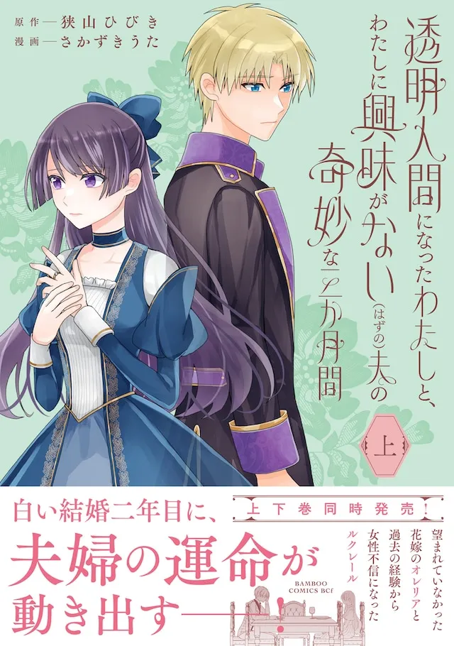 Volumes 1 and 2 of Sakazuki Uta's ``The Strange Three Months of Me Who Became an Invisible Man and My Husband Who Was (Supposedly) Not Interested in Me'' were released today, March 5th, by Takeshobo's otherworldly romance label, Bamboo Comics BCf. This is a comic adaptation of Hibiki Sayama's novel.