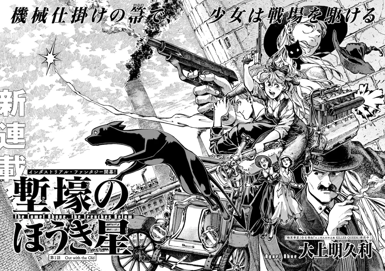 The setting of ``The Trench Star'' is Birmingham, England, in 1914, where war is approaching. The story of Monica, a ``witch'' girl who flies through the sky on a mechanical broom, begins. It is an "industrial fantasy" that depicts a world of magic and weapons.