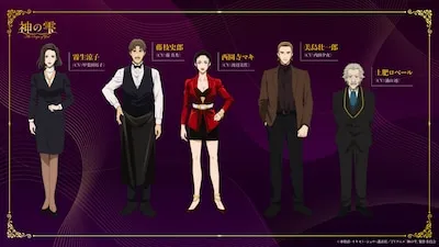 Five additional cast members have been released. Yuko Kaida will play the role of Ryoko Kiryu, a lawyer who is in charge of inheritance based on Toyotaka Kanzaki's will and is present at the confrontation between Shizuku and Issei over the "Shizuku of God" and the "Twelve Apostles", and Masahide Fuji will play the role of Shiro Fujieda, the sommelier who owns the wine bar Monopole where Miyabi frequents. Misa Watanabe will play Maki Saionji, the president of Scion Corporation, which imports and sells wine, and Issei's patron, while Yuya Uchida will play Soichiro Mishima, the president and owner of Bourgogne Rouge, where Miyabi works. Jin Urayama has been cast as Robert Doi, who lives in a cardboard house in a park and is described by Fujieda as ``the person who knows the most about wine in Ginza.'' The key visual depicts the main characters Shizuku Kamisaki and Kazuo Tomine facing each other with a wine glass in the background.