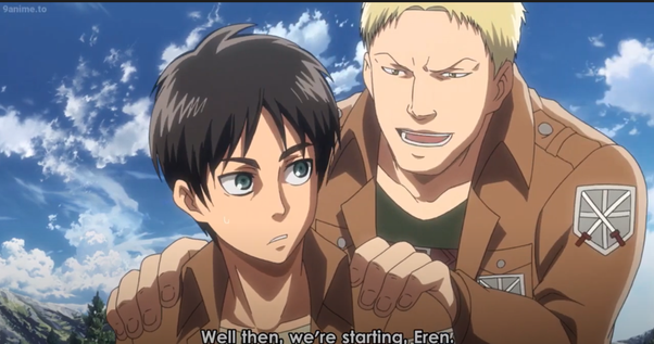 Eren in shock was still refusing to believe what was happening this stopped him from transforming right away as he couldn’t get his head around fighting Annie the goal did not match his world view to him people were either good or bad and Annie was one of the good guys i think his unchangeable world view was something fans hated about Eren at first well not in the fact that he was a total brat but he slowly transformed he started to move away from the cliche Shonen hero and let his Shonen world change him little by little while the female titan arc shattered Eren’s world views as he witnessed the dark side of humanity the clash of the titans arc breaks him a little more while Eren did look down on the military police brigade he learned about how rotten people within Wall Shiganshina really were from pastor nick as it is revealed he knew about the colossal titans within the walls since Eren is getting better and better at controlling the attack titan Hange wants him to replicate the female titan’s ability in hopes of sealing wall rose while on top of the wall in Trost district.