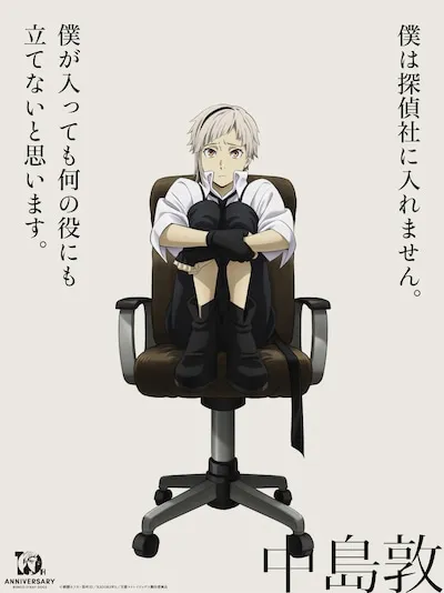 In addition, the 10th anniversary illustration "~Yokohama Edition~" of the TV anime "Bungo Stray Dogs" based on the original work by Kafka Asagiri and 35 Harukawa has been released. It was drawn by Harukawa 35, who handles comic adaptations, for the 10th anniversary exhibition that will open on June 6th at the Kanagawa Museum of Modern Literature. This illustration will be displayed at the exhibition. In addition, Bones, who produces animation, has created 20 new illustrations. The first illustration by Atsushi Nakajima and the silhouette of the subsequent illustrations have been released.