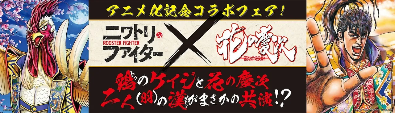 Collaboration fair banner between “Chicken Fighter” and “Hana no Keiji ─Komo Kanata ni─”