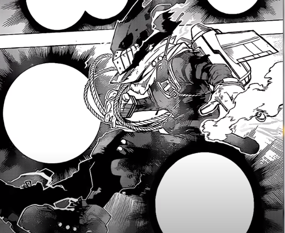 All of which were instructed by the founder to elaborate for him but furthermore and would express that deku may be leaning on the power of one for all too much causing him to make avoidable mistakes which may be interpreted as just because you have the power doesn’t mean you have to use it in its fullest at all times rein it in and consider its application a sword is a lethal weapon indeed but it is thanks to masterful hands that has been able to afford such prestige throughout the ages that even despite the eligibility provided by his quirk lessness he still possesses a major burden as the current wielder that most importantly he shouldn’t let the power use his body but instead have things be the other way around one for all is incredible but it should not be a crutch that he should instead think of his quirks more like the support items he currently has in his possession which is also fascinating we have a crime radio to represent danger sense rope indicative of black whip a jet pack related to float and a smoke bomb for his latest quirk i’m certainly a fan of this and if nothing else this serves to emphasize his difference from all might in the sense that support items never really worked for that guy but to go into more depth about this jetpack it’s probably the most high-tech piece of equipment he has on him so where does it come from exactly well seeing as so many hero agencies have now shut down it is possible that deku looted it from one such unattended arsenal if not that well at this point support items aren’t too hard to come by these days seeing as even civilians are able to possess them at this point but why a jet pack well if you remember back during the ua sports festival during the cavalry battle Hatsune had equipped his team with a jet pack under the pretense of Uraraka’s zero gravity quark a quirk so similar to float and personal application that it was used to help deku in his training so with this in mind i can imagine why a jet pack would make sense for him now leaping and hopping about like an edgy rabbit deku had successfully suffused the surrounding area with heaps and heaps of smoke effectively serving to limit muscular vision tremendously on top of the fact that he only possesses one eye from there he’d hone in on his own memories of muscular and begin to evade his attacks with danger sense which is probably my new favorite ability of his something that has only gotten cooler with this instance and i say this because that remark about recounting their previous engagement to me implies a more precise and refined avoidance based on experience and so the more familiar deku may be with an adversary the more reliable and or acute his danger sense may be not to mention the fact that his danger sense seems to possess a degree of recognition when in proximity to a familiar danger in the case of muscular prior to the first clash of this battle which is to imply that the range of this thing is absurd as well i mean guys remember when Bakugo clowned deku for only receiving bottom of the barrel quirks yeah that one for all supercharge is no joke because danger sends is amazing but after evading so well deku would employ black whip and grip onto muscular and with its ridiculous strength pull him right into a wall with ease as deku himself remained aloft thanks to float now at this point muscular in response to this was a bit annoyed that deku was to him using a bunch of annoying tricks with this deku would swoop down and begin his interrogation in regards to the current locations of shigaraki and all for one and listen between his use of danger sense and black whip deku is really looking like spider-man with the venom suit on but now especially considering that shot of him standing on the gargoyle a couple chapters back the way he dropped down here with that mean look in his eyes asking questions i could not help but see my guy batman muscular had no idea where shigaraki rl41 may be and didn’t really care he was told to do as he pleases when he was freed and that’s what he’s been doing he isn’t interested in small talk and instead simply wanted to go head to head with deku now despite the employ of these many new quirks muscular wasn’t fascinated by them in the slightest what he wants as a muscle head is a straight up strength test and with this still restraining him with black whip deku would begin to ask muscular why it is he does what he does as muscular would respond that it’s how he lives his life to the fullest which prompted deku to ask if there’s not another path he might be able to take now using his true name as opposed to his villainous one but just then muscular would refuse and begin to swell breaking free of black whip’s grasp again he was not here to talk but even still deku would recount his prior sentiments towards shigaraki and the others that he’s faced that perhaps if he understood them things could turn out differently but then he would think of Shota who had lost his parents to this monster a kid who now admires him greatly he’d think of the scared child deep within the mass murderer that is shigaraki it’s a difficult and complicated issue that despite his good intentions isn’t something that can be figured out so soon especially not in the midst of battle but as expected this is something that he’ll need to consider and work through before he tries to do so with shigaraki otherwise he’ll go in having no choice but to end his life deku would then tell muscular that a rematch was pointless but even still muscular was not backing down as suddenly his body began to look shredded.