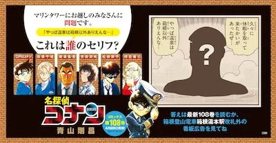 Collaboration projects will also be held at facilities that appear in important scenes in the movie version. On the second floor of Anest Iwata Sky Lounge, there is a decorative corner with standees and panels from the movie version. On the path leading there, a panel from the original episode where Chihaya first appeared is displayed. Goods and limited quantities of ``Detective Conan Sticker Lottery FILE.5 Detectives' Investigation File'' will be on sale at the facility. Aoyama's signature colored paper was also on display. In addition, collaboration advertisements can be seen inside and outside the ticket gates and coin lockers at Hakone-Yumoto Station, as well as at the cable car transfer gate at Gora Station.