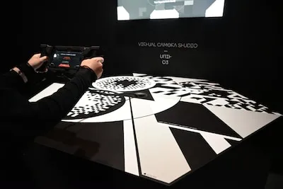 There is also plenty of content around the central tower. For example, in the ``Virtual Camera Studio,'' the virtual camera system that was used to create the battle scenes for Unit 01 and Unit 13 in ``Shin Evangelion The Movie'' has been reconfigured, allowing visitors to take pictures of battle scenes. You can take three test shots and receive explanations from the staff, so even people who don't normally use cameras can take pictures with confidence. In addition, the captured video can be downloaded from the QR code written on the receipt issued at the reception.