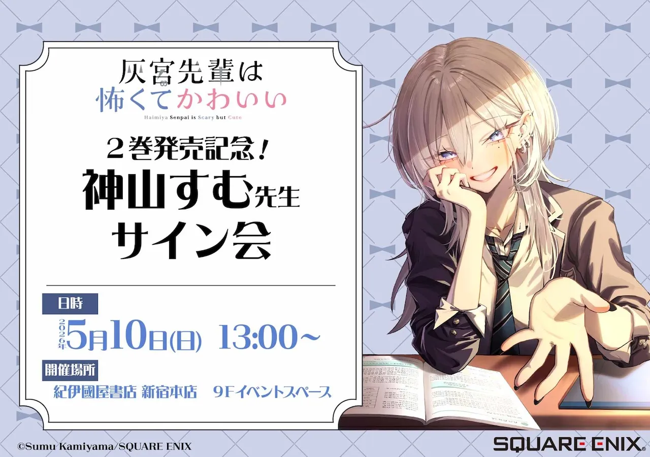 An autograph session by Sumu Kamiyama of "Haimiya Senpai is Scary and Cute" will be held on May 10th at Kinokuniya Bookstore Shinjuku Main Branch in Tokyo.