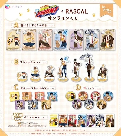 A collaboration online lottery between the TV anime ``Katekyo Hitman REBORN!'' based on the original work by Akira Amano and Rascal from the anime ``Rascal the Raccoon'' is being sold at the online lottery service Kuji Cliff from today, April 14th to May 14th at 5:59 p.m. 770 yen including tax.