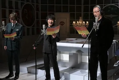 Kenjiro Tsuda, Koichi Yamadera, Akio Otsuka appearing on "Bistro Voice" from left