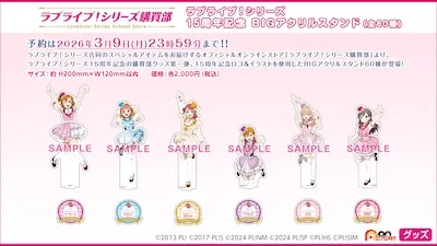 A total of 60 types of "BIG acrylic stands" using the 15th anniversary illustrations of the "Love Live!" series will also be released. Mail order site Love Live from 18:00 today, February 21st! Reservations are being accepted at the series purchasing department and elsewhere.