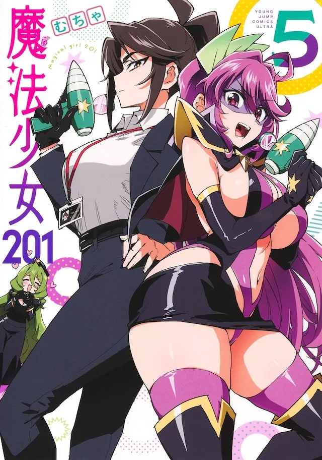 "Magical Girl 201" is a slapstick comedy about a female executive of an evil organization and a righteous magical girl. It is serialized in Ultra Jump (Shueisha), and was featured on the cover and center color of the magazine's March issue, which is currently on sale. At the end of Volume 5, there are illustrations contributed by Kool Kyoushin, Sangatsu, and Muchimaro at the time of Volume 4's release.