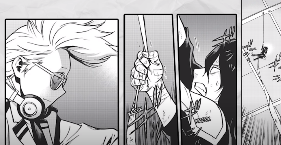 He was overwhelmed by size and power leaving area started feeling like he had nothing then again came that voice these encouraging words echoed from the speaker eraser head again charged into action this time doing damage throwing rocks dodging attacks charging into the enemy taking damage but still fighting while words of encouragement continued to echo until in one big finishing move carries ahead would defeat the gun using his own blast to deal the final blow in the aftermath Aizawa was feeling good he’d just beaten the odds and with the help of a good friend took down a villain that a pro hero couldn’t the joy would be depleted though by the realization that there were no words of encouragement the speaker was broken from the beginning he had imagined it all after this as all would see it a covered bloody scene that said enough throughout the fight he was alone his friend was already gone the rain would pour on while Yamada a Nozawa stood alone grieving the loss of their close friend one year later things had changed drastically as I was more closer to the man we know today his hand combat skills were excellent his sleeping during daylight habit had begun his facial hair had started to grow and his goggles were now like the ones.