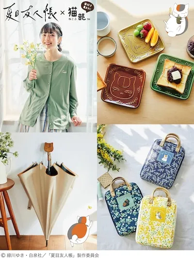 New collaboration goods between the anime "Natsume's Book of Friends" based on the original work by Yuki Midorikawa and Felissimo Neko Club are now available. The lineup includes four items with a Nyanko-sensei motif: an umbrella for rain or shine, a cardigan, a flat pouch, and a toast plate.