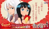 In this collaboration, a collaboration visual for Mother's Day on May 10th was also released. The Father's Day visuals announced this time are Vivi and Cobra, Rebecca and Kyros, Momonosuke, and Hiyori and Oden. A total of 6 types have been drawn, each expressing the true feelings of both the person giving and receiving the 'thank you.' In addition, an outdoor advertisement using Mother's Day visuals and Father's Day visuals will appear on Tokyu Toyoko Shibuya Super Board A-1 at Shibuya Station in Tokyo from today, April 27th to May 3rd.