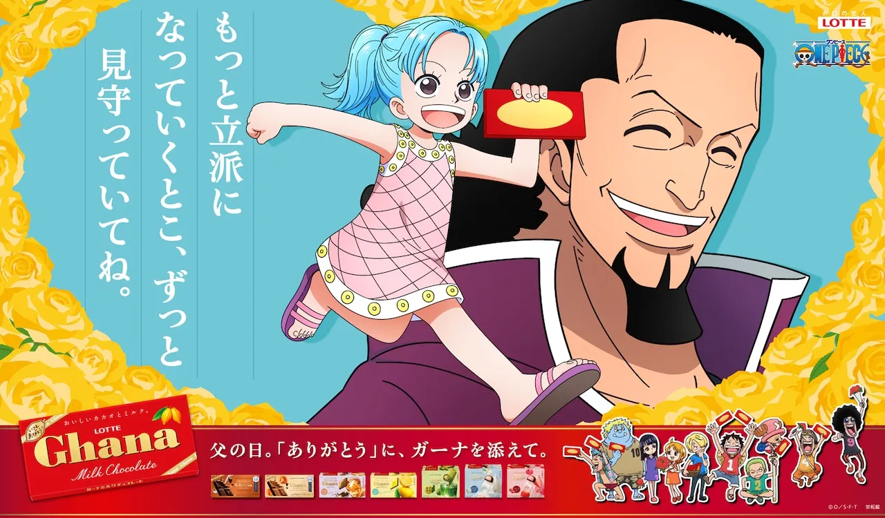 As the second collaboration project between the TV anime 'ONE PIECE' based on the original work by Eiichiro Oda and Lotte's 'Ghana Chocolate,' a newly drawn visual for Father's Day on June 21st has been released.
