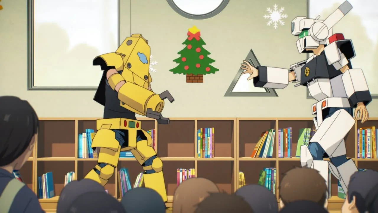 ``Mobile Police Patlabor EZY'' is a new anime in the ``Mobile Police Patlabor'' series that was announced in 2017. After about 9 years, the series will be released in theaters sequentially from May 15th, consisting of 8 episodes and 3 chapters. The story is set in Japan in the 2030s, where the working population continues to decline. Members of the 2nd Platoon, Special Vehicle Division, and the AV-98Plus Ingram, which is a tuned-up version of the old 98 AV Ingram, fight against new technological crimes with wisdom and courage. The scene cut shows the work of the second platoon. It captures scenes from everyday life, such as going to a nursery school to introduce the work of the Labor Team to children, Towa and Kippei wearing cardboard suits playing the role of a runaway Labor and his opponent Ingram, and the members of the police station having some kind of friendly atmosphere.