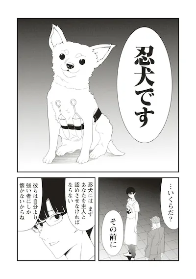 Shinobu is a breeder's shop where customers visit in search of cute pets. At first glance, it looks like an ordinary store, but behind the scenes it is actually a training center for ninja dogs, the partners of modern-day ninjas. Ninja dogs look like cute Chihuahuas, but they have incredible fighting power, and they have a variety of abilities that surpass even ninjas, such as being able to read information from the scent of blank sheets of paper that don't even have codes written on them. The story depicts a breeder's shop clerk who carries out behind-the-scenes work with these ninja dogs at his side.