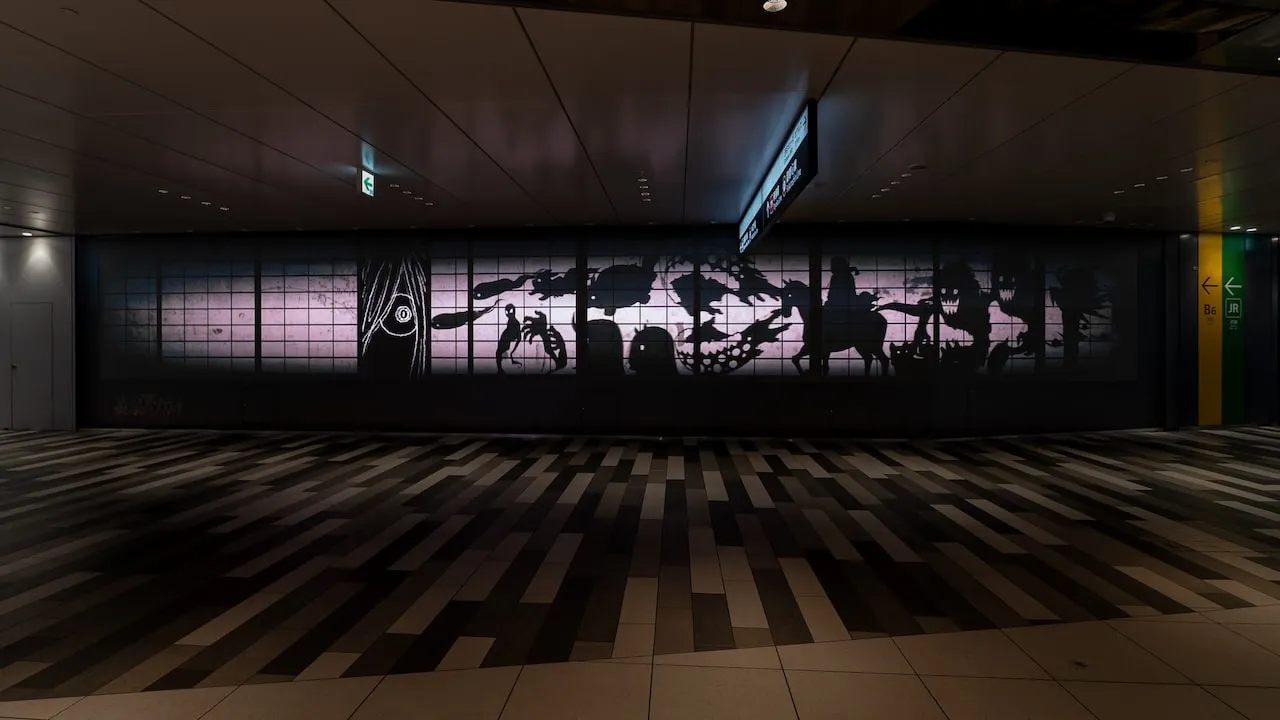 Large advertisement with the theme of “Hyakki Yako” displayed at UC Chika Vision in Shibuya Scramble Square